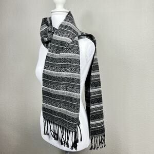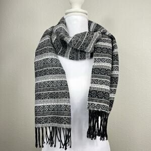 Savile Row Mens Scarf Snowflake Geometric Gray Black Fringe 64” Long Cozy Preppy