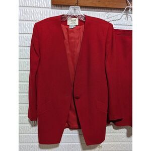 Savile Women's Red 2 Piece Set Button Single Breasted Wool Skirt Suit Size 12P