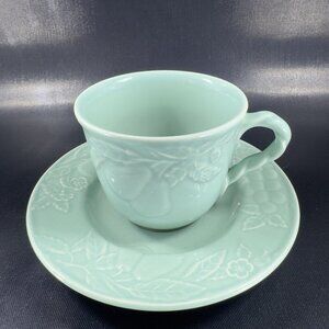 Savoir Vivre Fruit Promenade Celadon Porcelain Ceramic Teacup And Saucer Set VTG