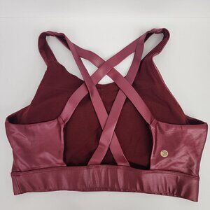 Savvi Code Bra Top, Color Cranberry, Size Large. Poly/Spandex, Liquid Finish, Crisscross Racerback. Removable Pads. Pre-Owned, Looks New.