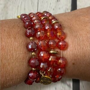Savvy Bling Ruby Reds Stretch Glass Bead 4 Piece Bracelet Set