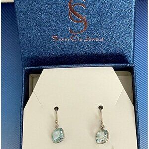 ITEM: Savvy Cie Jewels Sterling Silver Blue Topaz Square-Cut Bezel Stone Drop Earrings