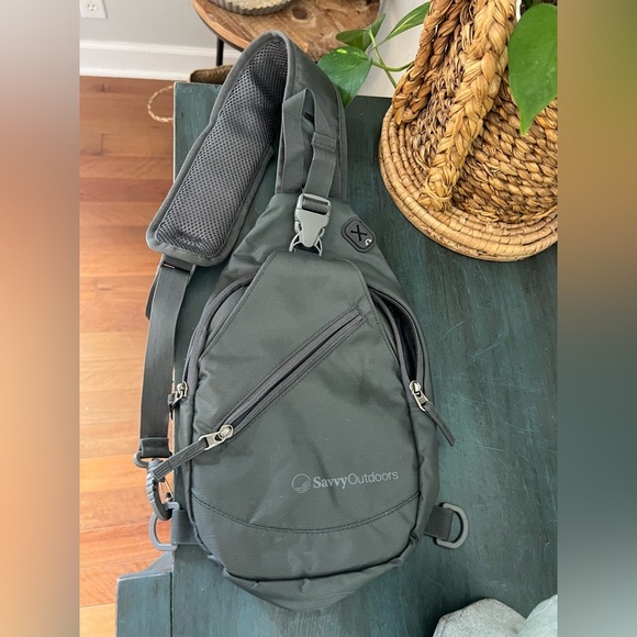Savvy Outdoors Small crossbody sling backpack Grey. Please see photos for details and conditions. Open to offers. Fast shipper. 825-B