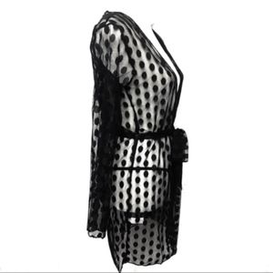NEW Super hot & sexy polka dot belted sheer wrap & thong 3pc set