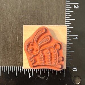This rubber stamp features a charming bunny design and is crafted in the USA. Ideal for craft projects, scrapbooking, and creative decoration.