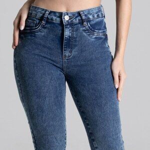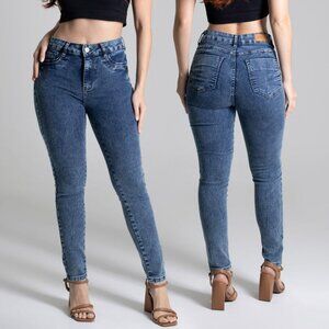 Experience the blend of style and comfort of these Brazilian Butt Lifting Jeans that are crafted from a quality blend of 73% cotton, 24% polyester, and 3% elastane, that enhances your shape. The jeans feature a medium waist, Metallic button and zip closure. The front false pockets and functional back pockets offer a touch of elegance for a casual day or a night on the town.