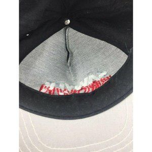 Nice pre-owned condition with normal/minor wear, mild fading. Black/Grey Stripe design. Flat Brim. Embroidered spelled out text logo. Contrasting visor. See pics.