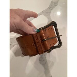 Sax Fifth Avenue Leather Brown Belt Sz S Braided Trim Embossed