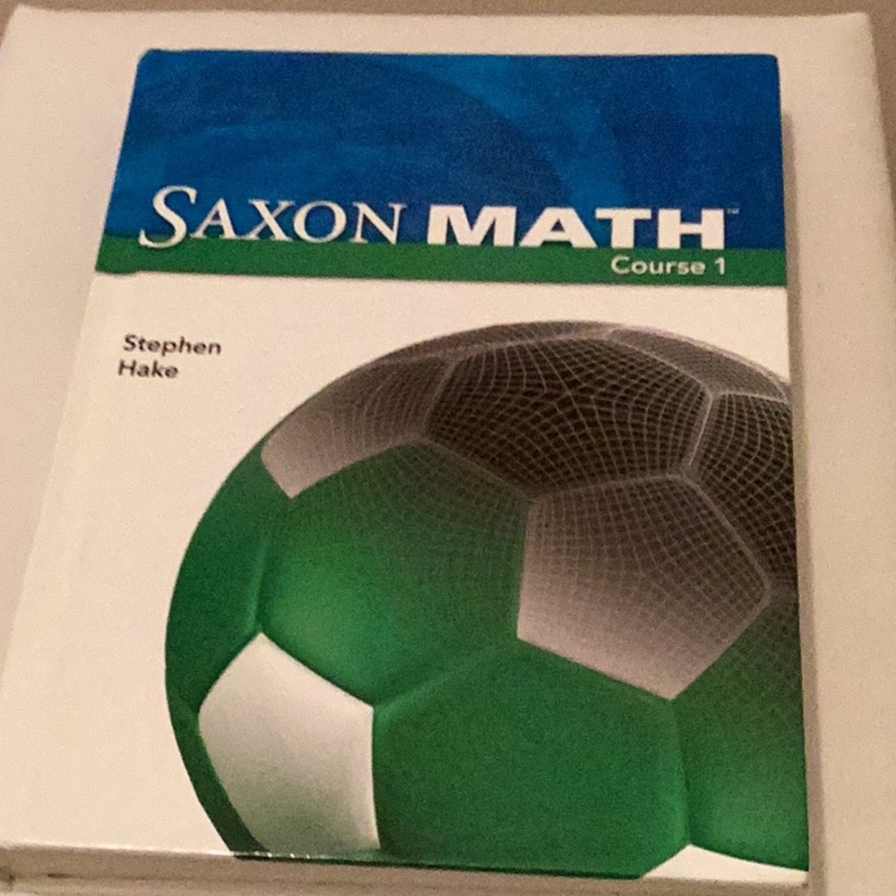 Saxon Math Course 1 textbook. It is gently used and has a few pencils marks on the pages