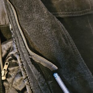 This vintage 100% heavy long leather coat exhibits some wear on the zipper, shoulders, and sleeves, as previously noted at the pictures. Despite these minor imperfections, its overall appearance remains excellent, and both zippers are fully functional.