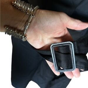Accents:lapel notched collar,oversized buttons,double breasted,belted waist