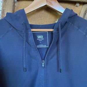 Saxx hoodie with zip closure and drawstrings. Soft. Size Large.