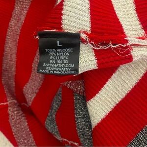Say What 2 Piece Top & Skirt Set Red Black White Stripe Glitter Large Fits Small