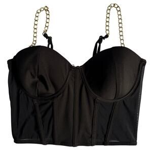 Say What Black Chain Strap Bustier Crop Top Women’s Small Adjustable Zip