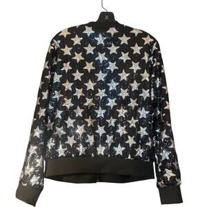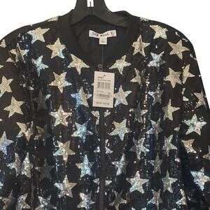Say What? Bomber Jacket Women Sequin Stars Embellished Full Zip Size L Sparkly