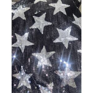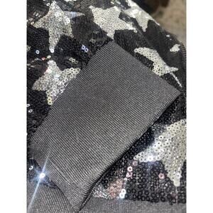 Say What? Bomber Jacket Sequin Silver Stars Embellished Full Zip L Sparkly NEW