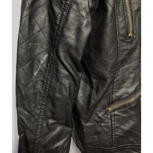 Say What? Cropped Faux Leather Jacket XL Black Gold Zipper Accents Motorcycle