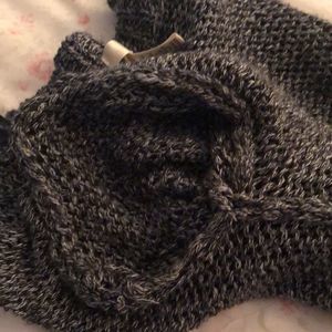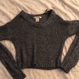 Say What? Cropped Grey Crew Neck Sweater Med. Extra Long Sleeves/Ribbed Accents