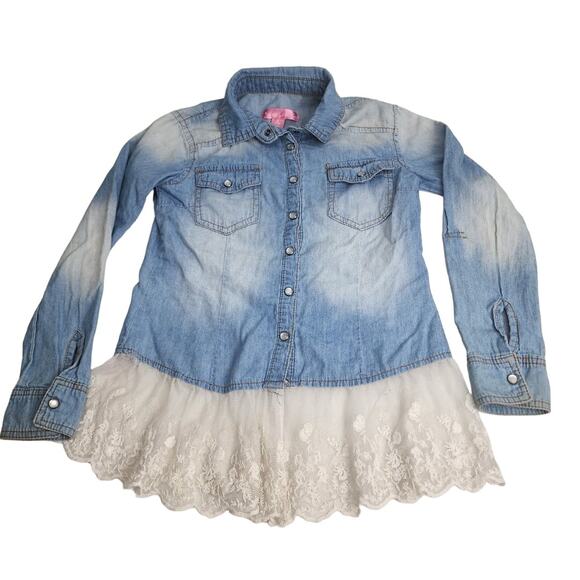 Say What? Denim Lace Chambray Button Up Shirt Girl's Size Small 7/8