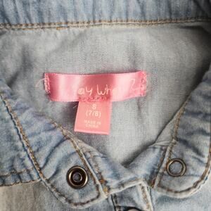 Say What? Denim Lace Chambray Button Up Top Shirt Girl's Size Small 7/8
