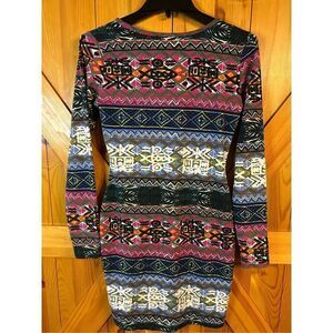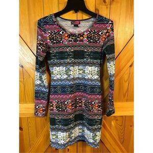 Say What? Dress Geometric Pattern Longsleeve Tribal Print Size Medium (0025)