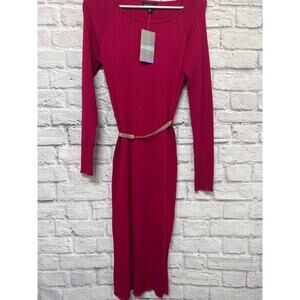 Say What Fushia Pink Midi Bodycon Ribbed Sweater Dress Rhinestone Belt SZ XL NWT