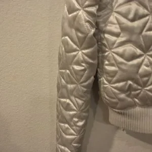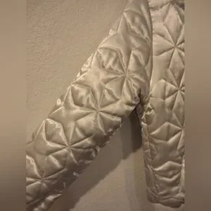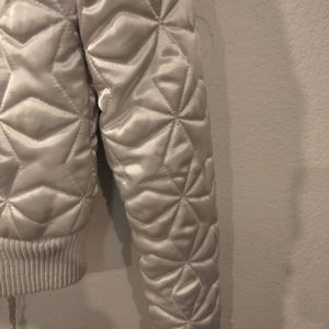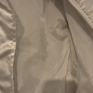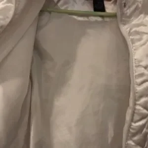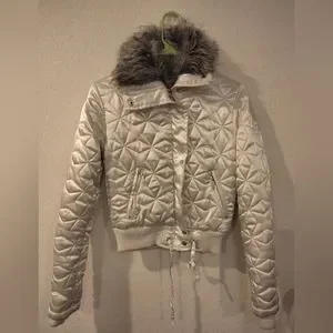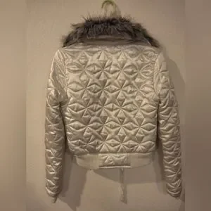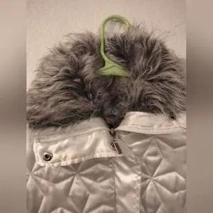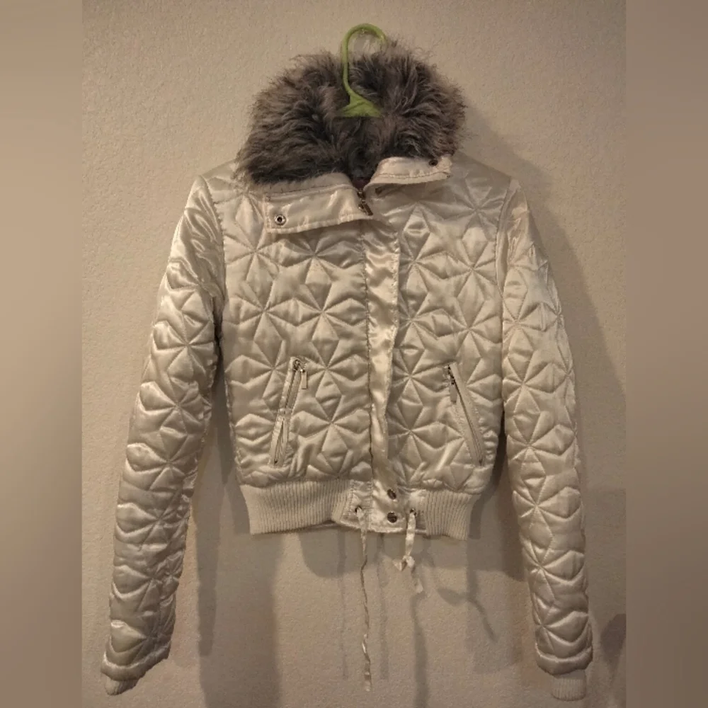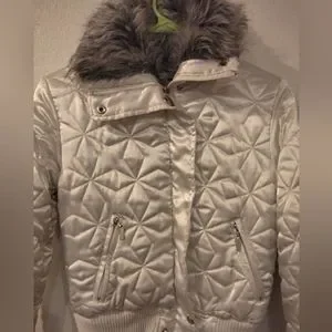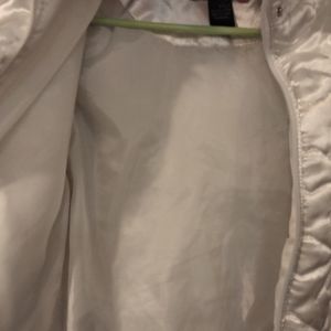 Say What? White Satin Jacket with Hooded Fur. Size Small, Only Worn Once.