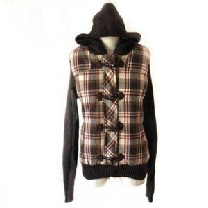 Say What Jacket XL Juniors Puffer Knit Hooded Plaid Ribbed Cozy Warm Toggle