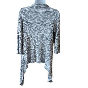Say What Knit Crochet Cardigan Open Front Small Cascade Black White Lightweight