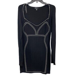 Say What Long Sleeve Rhinestone Bodycon Dress Size XL Embellished Evening Party