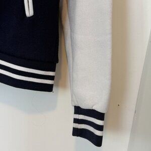 Say What? Navy & White Varsity Hooded Jacket | Button Front | Size S