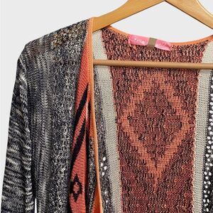 Say What? Open Front Cardigan Size L Multicolor Open Knit Aztec Geometric Print
