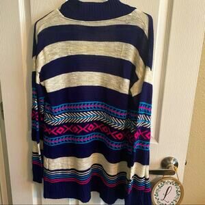 Say What Striped Open Front Chunky Knit Sweater. Size tag has washed off, but it would fit a small (oversized) or a medium. Please see measurements for fit before purchasing. Pit to pit measures approx 19 in across when sweater is laid flat and loosely closed. Length down center back measures approx 29 in. Blues, pinks, & white / off-white. Sweater is in good used condition with some piling & wash wear, but no stains or holes. Please see close-up pictures for condition details.