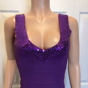 Say What Purple Sequin Sleeveless Sweater Mini Bodycon Dress Size Small.