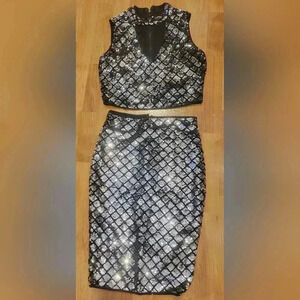 Say What Skirt Set 2-PC Top (L)+ Skirt (M) Sequins Vintage M/L