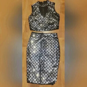 Say What Skirt Set 2-PC Top (L)+ Skirt (M) Sequins Vintage M/L Y2K