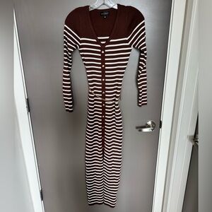 Flaws: Gold chain belt needs to be linked together to be worn correctly. In this photo I have them tucked into each other. No odors, noticeable wear, or stains (see photos)