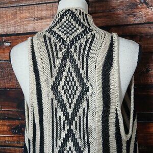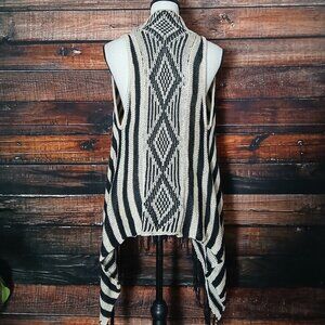 Say What? Sweater Vest Cardigan S/M Bohemian Fringe Open Front Striped Knit