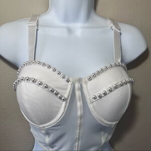 Say What White Mesh Pearl Crop Bralette Size Small New With Tags