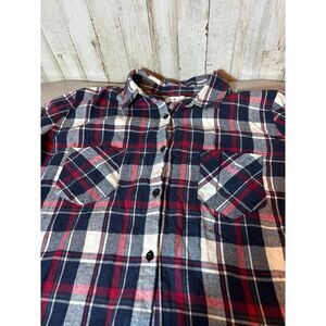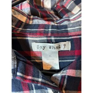 Say What Womens Hi-Lo Cotton Plaid Shirt XL