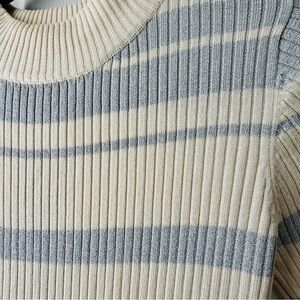 Elevate your style with this chic striped ribbed knit dress. Featuring a blend of cream and gray colors, this dress offers a sophisticated look for any occasion. Perfect for a day out or a casual evening.