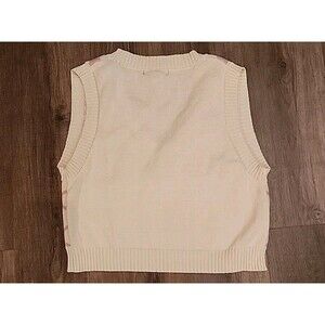Say What? Womens Sweater Vest XL Beige Pink Hearts Academic Preppy