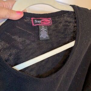 Beautiful 2X ‘Say What’ tunic with lace trim at the bottom. Note the texture.... it’s not a smooth material. Very stretchy & sheer where you will be able to wear this throughout spring with a black bra or tank.