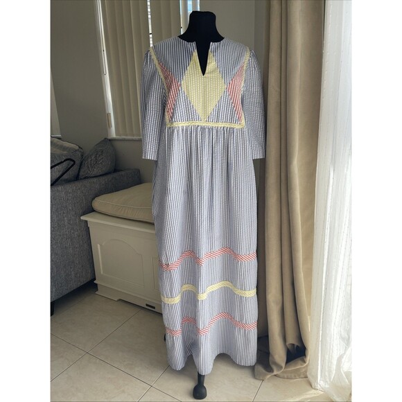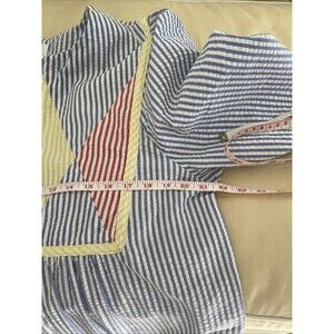 Saybury 70’s Vintage Seersucker Maxi Dress Blue Yellow Red Stripe Womens Size L