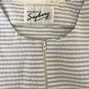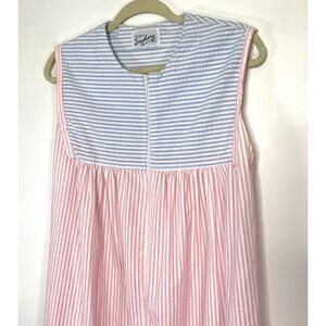 Saybury Vintage 80s Pastel Striped Half Zip Pockets Lounge Comfy Muumuu Dress