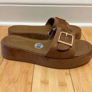 Seychelles Platform sandals in cognac brown, size 9,5 , buckle, suede, new with tags