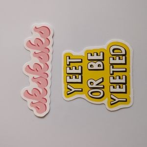 Set of six brand new stickers that feature sayings such as: suck it, sips tea, sksksks, yeet or be yeeted, oof, and YouTube.