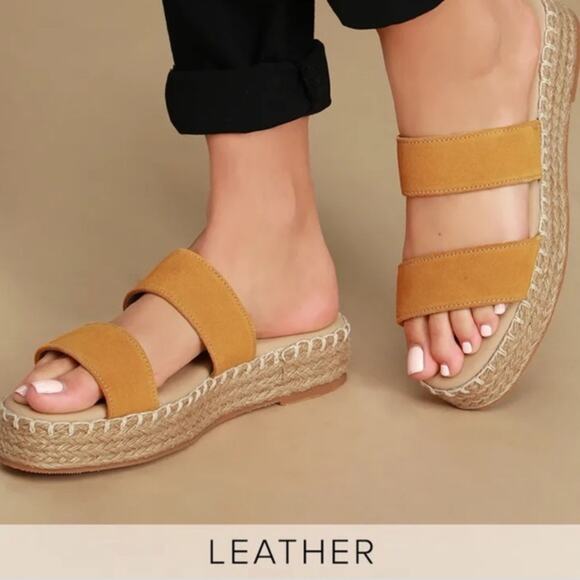 Sayler Suede Leather Flatform Espadrille Slides lulus