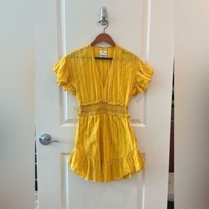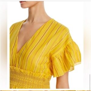 Saylor Adrianne Shift Mini Dress Yellow Cotton Blend Metallic Stripe