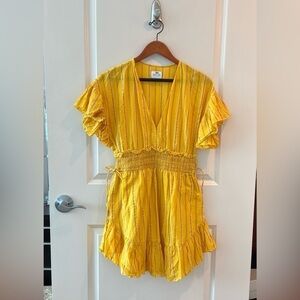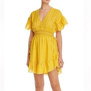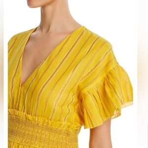 Saylor Adrianne Shift Mini Dress Yellow Cotton Blend Metallic Stripe